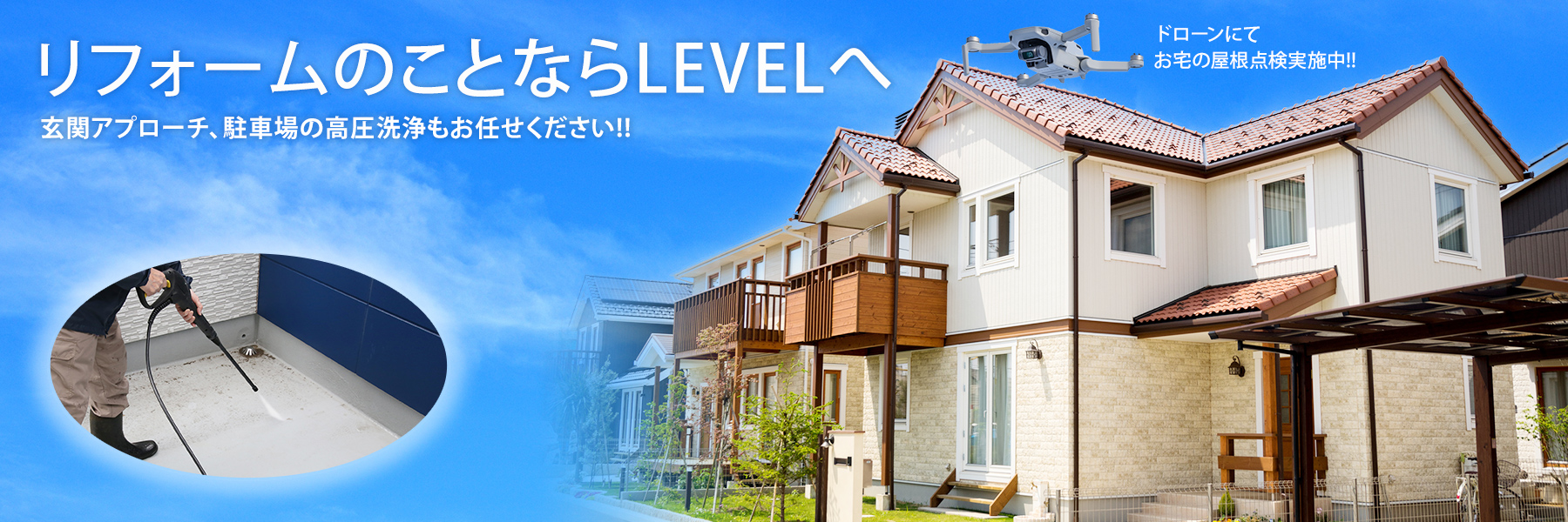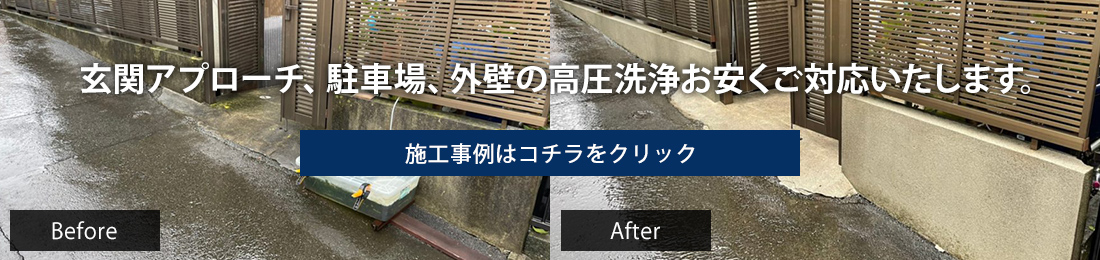 玄関アプローチ、駐車場、外壁の高圧洗浄など、ご依頼を承ります。