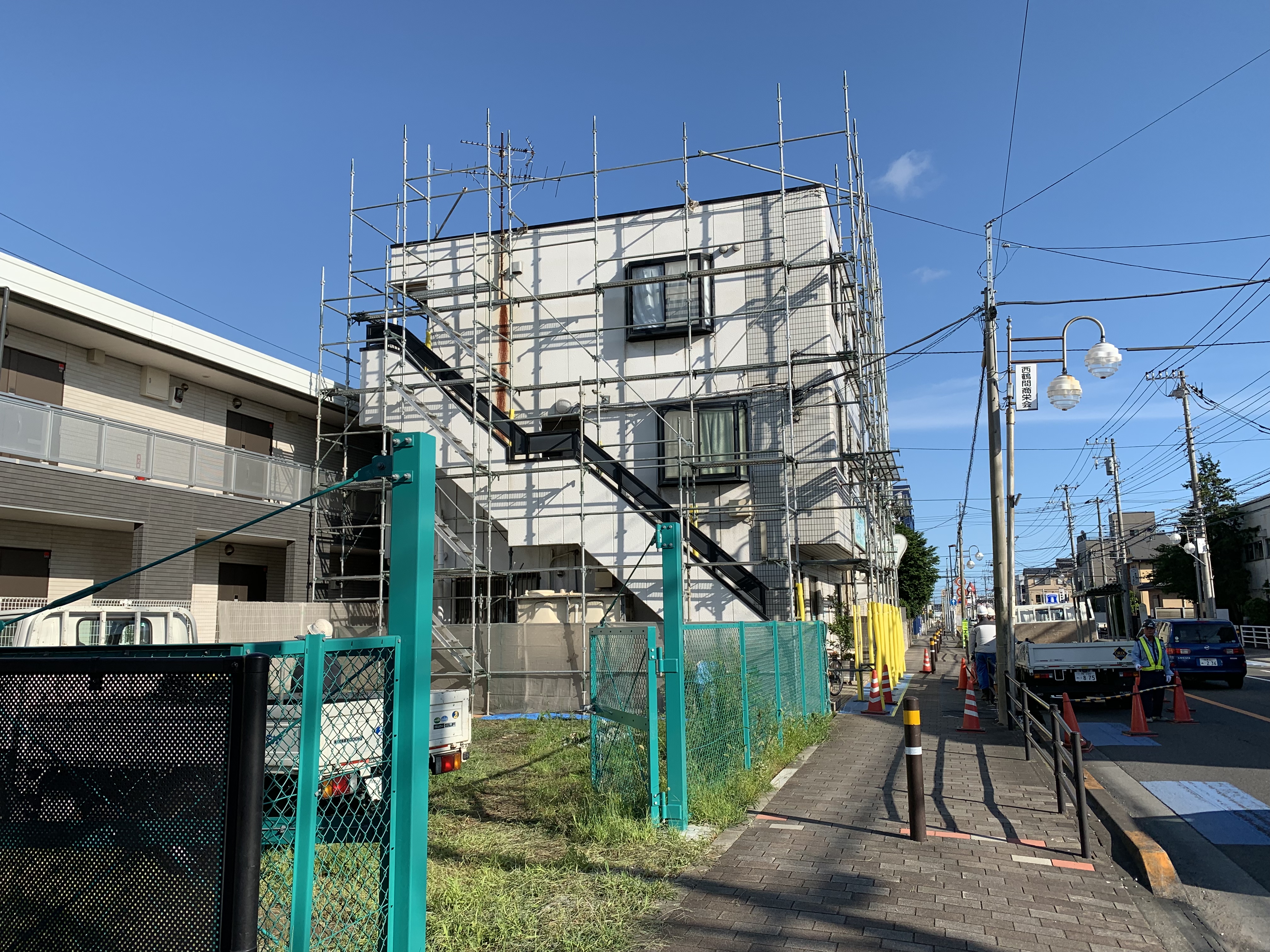 工期:8月~ (2日間)施行場所:文京区大塚作業内容:足場工事コメント:敷地、駐車スペースがなく車移動が大変な現場でしたが、綺麗に組み上がりました。