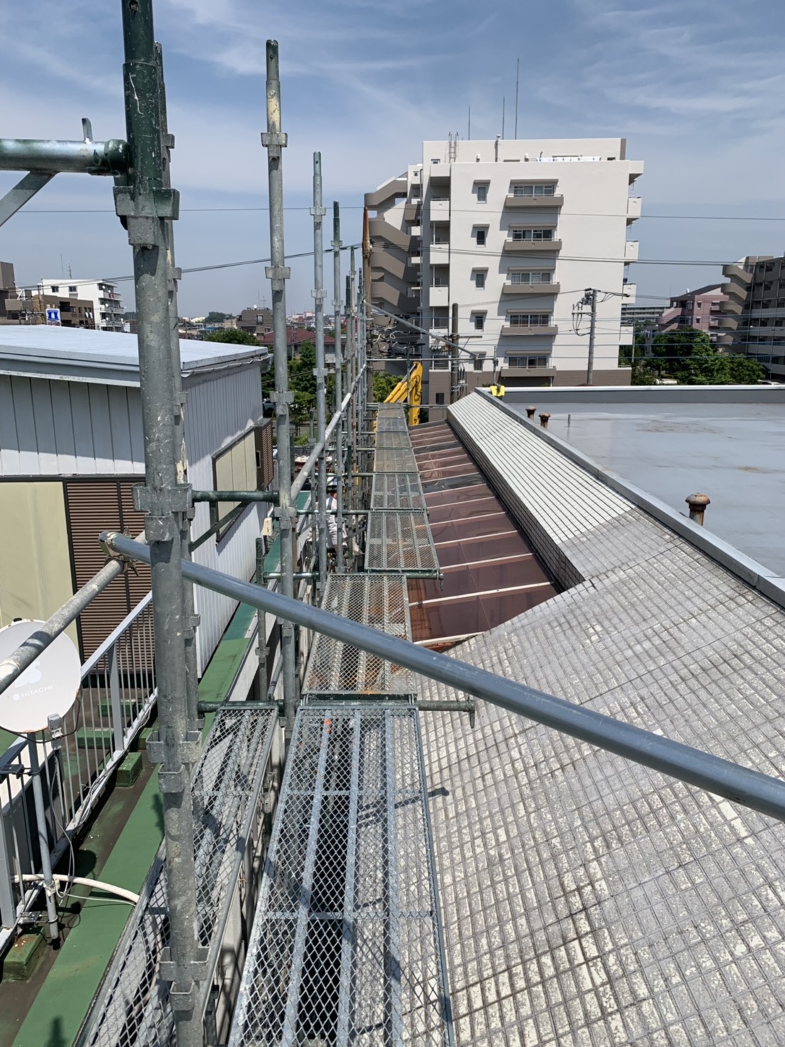 重い瓦屋根から軽い板金屋根にする葺き替え工事。