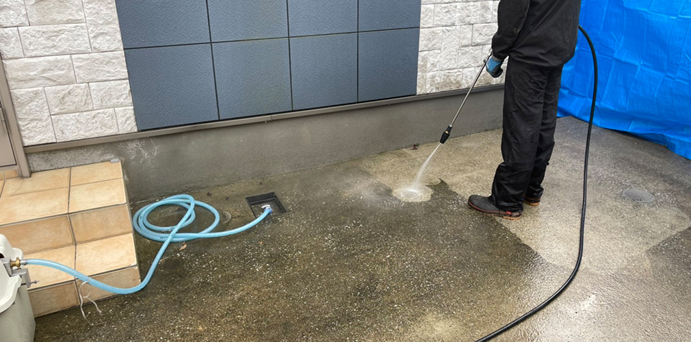 玄関アプローチ、駐車場、外壁の高圧洗浄お安くご対応いたします。